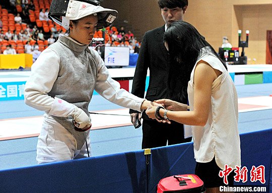 7月29日,2015年全国青年击剑锦标赛暨首届青运会击剑比赛测试赛在福建宁德市举行。“刀光剑影”中,来自16个省、22支代表队的325名击剑运动员同台竞技,角逐正式赛资格。测试赛从7月29日持续至8月5日。