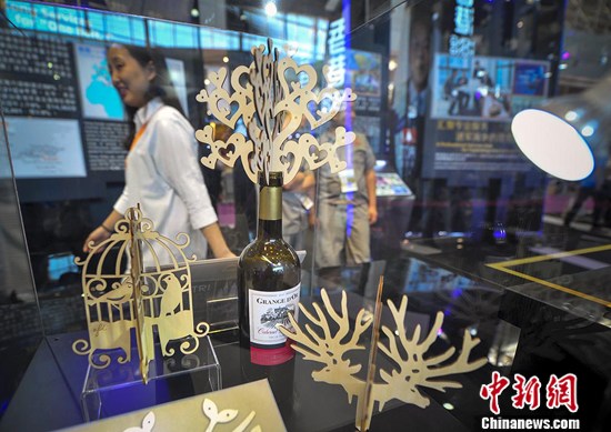 香港展位在显著位置推介创意设计产品,一个如绽放花朵般的装饰用酒瓶塞。 刘新 摄
