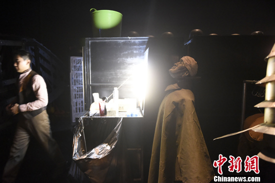8月24日,英国国家剧院的经典舞台剧《战马》中文版在北京国家话剧院举办媒体开放日活动,首次向媒体曝光剧中精彩片段,并揭秘幕后诸多亮点。中新社发 廖攀 摄