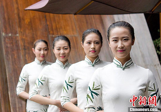 工作人员身着旗袍令人眼前一亮。吴斌 摄