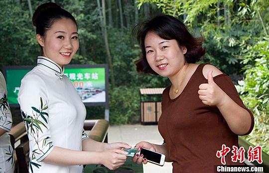 9月28日,经过空姐空乘礼仪培训后,江苏常州溧阳南山竹海工作人员身着旗袍、用微笑服务和动人身姿上岗服务,不仅提升游客们的旅游舒适度,同时倡导文明旅游。