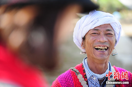 新村党支部书记、僜巴人金夏接受媒体记者采访,脸上乐开了花。 中新社记者 陈文 摄