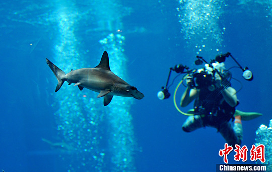 12月28日,珠海横琴长隆海洋王国鲸鲨馆为新“住客”20头双髻鲨举行了入住仪式。中新社记者 刘卫勇 摄