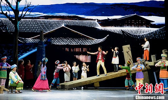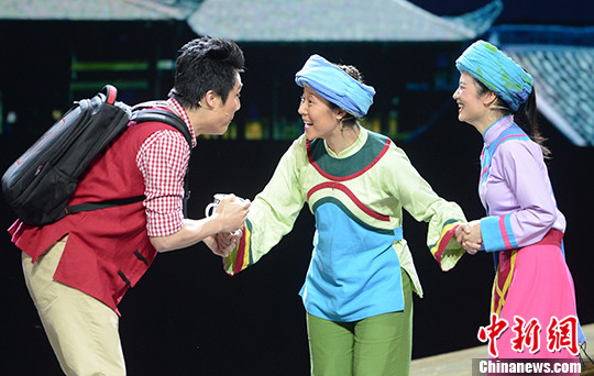 该剧讲述了湖北恩施土家族姑娘田露与台湾青年林文杰倾心相恋,飞跃海峡远嫁台北的故事。 中新社记者 刘可耕 摄