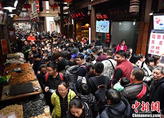 【新春走基层】重庆洪崖洞景区人气旺 游客雾里看两江