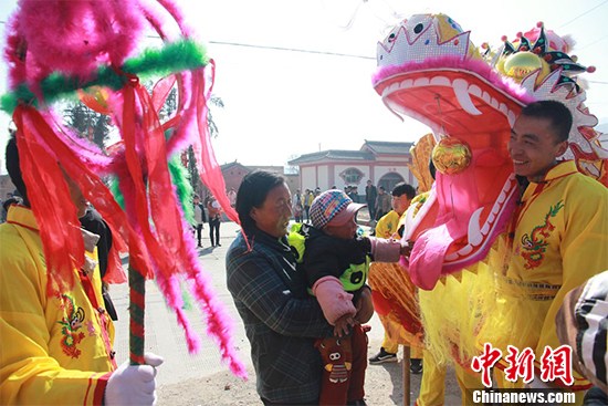 甘肃多地传统社火闹新春 “猴王”来舞狮