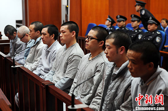 被告人犹敦奎等8人涉嫌绑架罪、掩饰、隐瞒犯罪所得罪一案在深圳中院刑事审判区开庭审理。中新社记者 陈文 摄