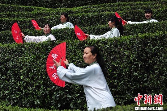 湖北大妈齐聚茶园舞“太极”