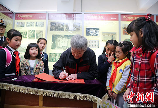 吴青给学校题词。 杨兵 摄