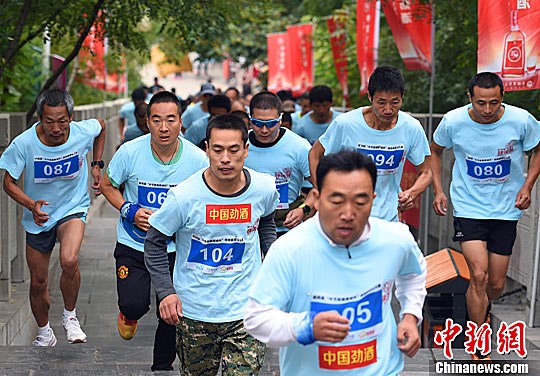 10月9日,农历九月初九,是中国传统的重阳节,河北民众在石家庄抱犊寨登高望远。重阳登高是中国自古以来的传统,金秋九月,天高气爽,这个季节登高远望可达到心旷神怡、健身祛病的目的。中新社记者 石峥 摄