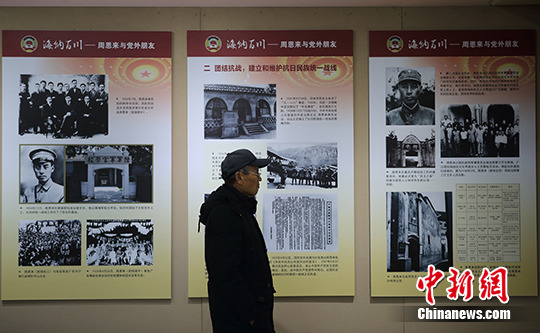 1月8日是周恩来逝世41周年纪念日,“海纳百川——周恩来与党外朋友”专题展览在南京梅园新村纪念馆对民众开放,展览分为“党的统一战线工作的伟大奠基人”、“周恩来与党外朋友们”两个部分,共展示历史照片200余幅。