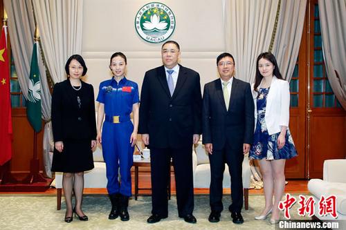 4月24日,澳门特区行政长官崔世安(左三)会见了中华全国青年联合会副主席、航天员王亚平(左二),双方就澳门特区支持国家航天事业、澳门的科普发展等议题交换意见。中新社记者 龙土有 摄