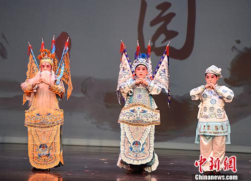 京剧培训班小学员汇报演出。 中新社记者 张朔 摄