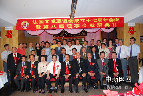 法国文成联谊会十八日晚在巴黎举行第八届会长团及理监事就职典礼,旅法华侨胡绍料就任新一届会长。目前,在法国的文成乡亲有近万人。