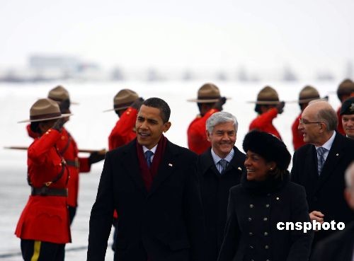 加拿大东部时间十九日上午十点半,美国总统奥巴马抵达渥太华,开始对加拿大进行为期一天的“旋风式”工作访问。这是奥巴马上月就任美国总统后首次出访。中新社发 高如东 摄