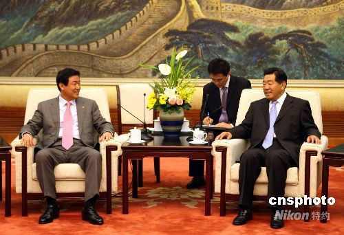 九月二十五日,全国政协主席贾庆林在北京人民大会堂会见出席第二届制造业论坛的外国嘉宾。中新社发 任海霞 摄