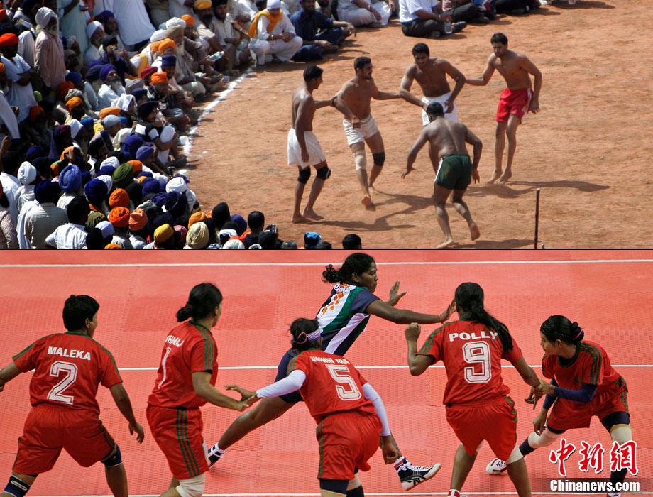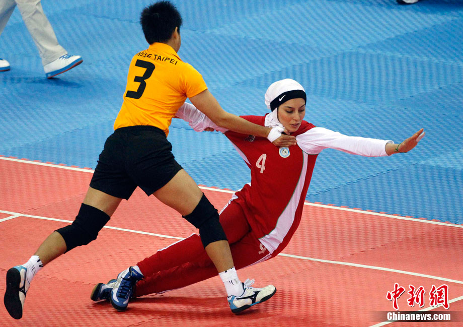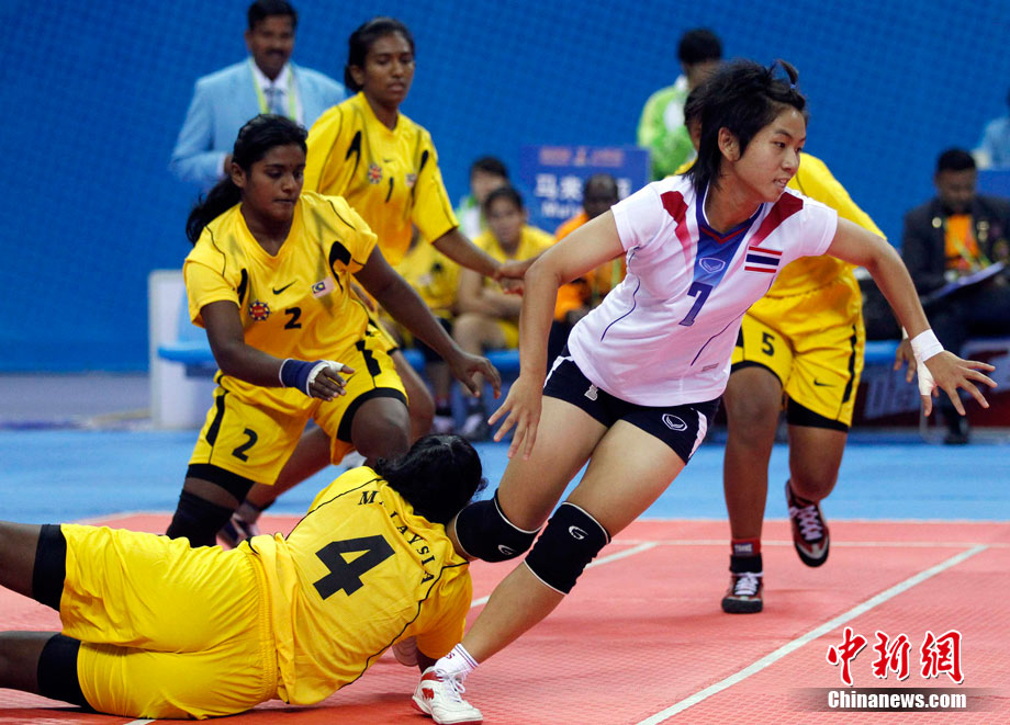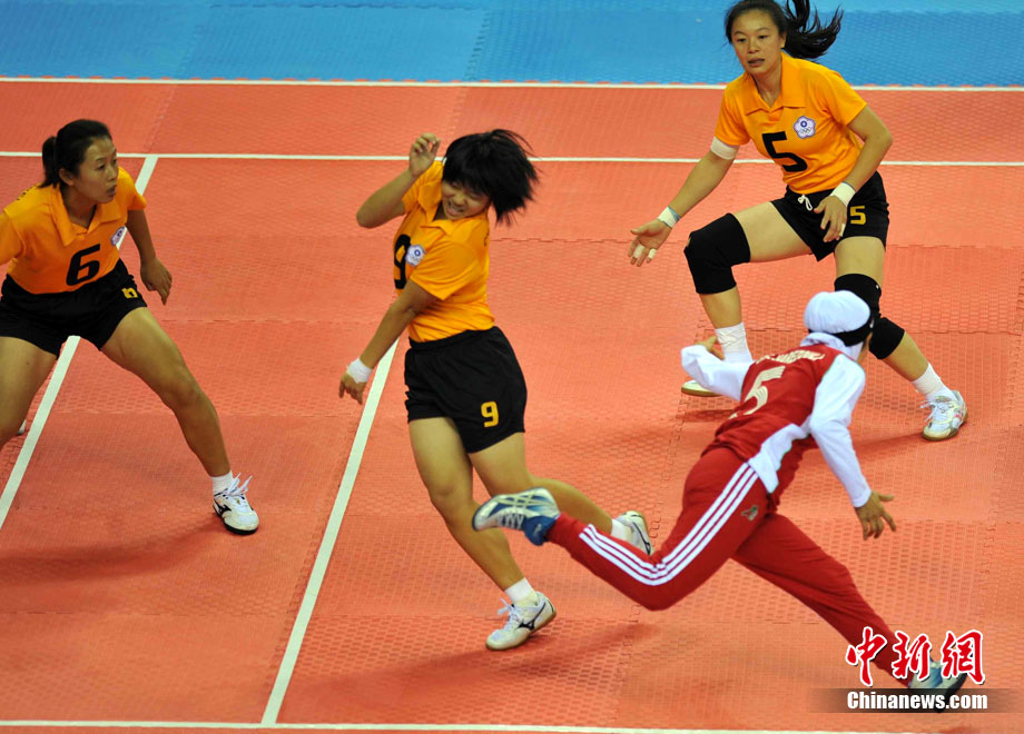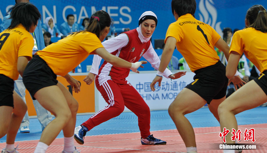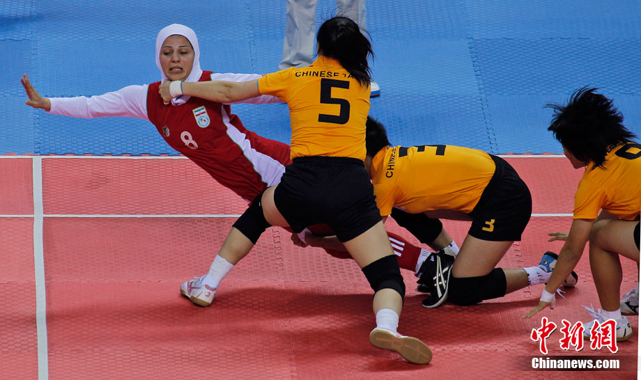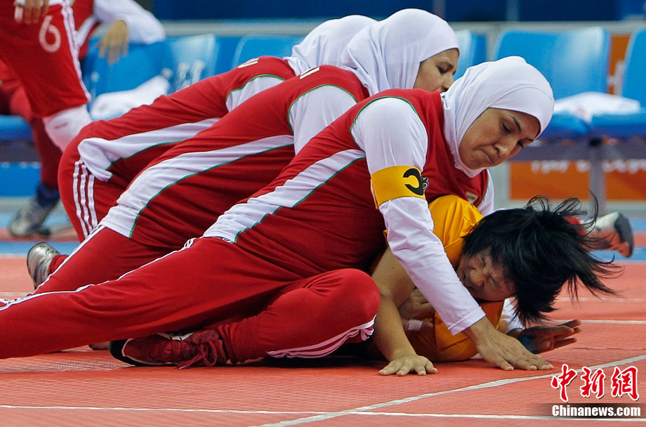 下图:2010广州亚运会女子卡巴迪比赛现场。