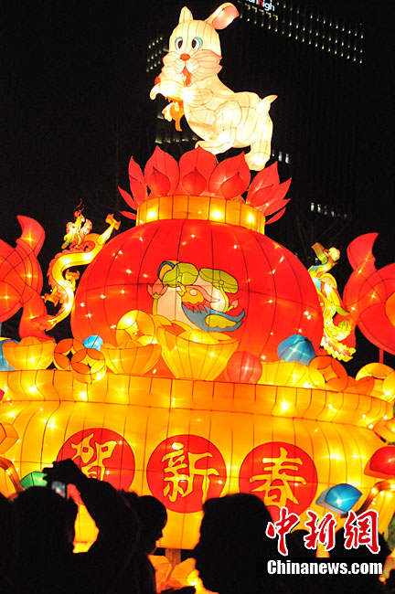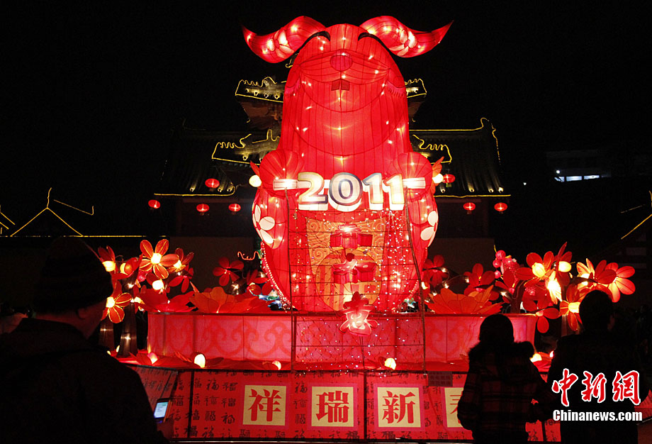 2月15日是传统的元宵节前“上灯日”,南京阅江楼景区的静海寺广场举行彩灯亮灯仪式,璀璨灯彩将景区装扮得喜气洋洋。阿董 摄 图片来源:CNSPHOTO