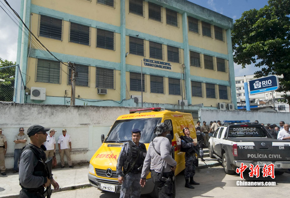 当地时间4月7日上午,巴西里约热内卢市发生了一起校园枪击案,造成包括凶手在内的多人死伤。凶手名叫韦林顿(Wellington Menezes de Oliveira),24岁,曾是西尔维拉市立学校的学生。该校的学生主要是9至14岁的孩子。巴西总统罗塞芙对事件表示震惊。教育部长费尔南多称,此次“悲剧”前所未有。
