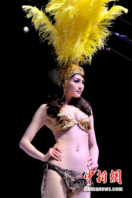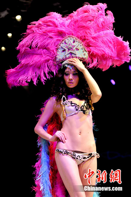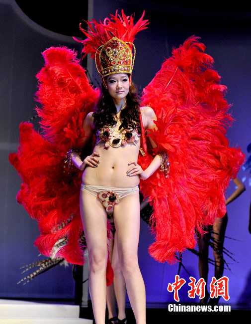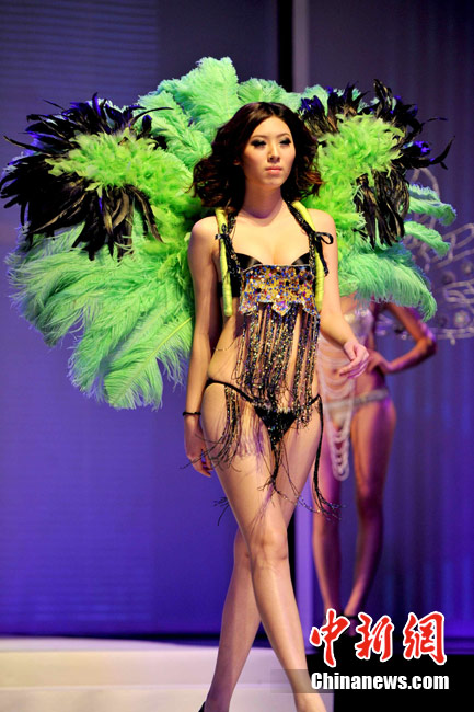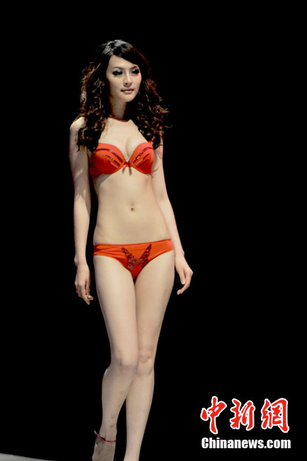 4月19日,第二届海西国际时装周上演性感内衣秀。作为第十四届海峡两岸纺织服装博览会的重要活动项目之一,本届海西国际时装周从18日至20日,两岸知名设计师联展、品牌流行趋势发布、面料流行趋势发布、院校学生作品设计发布等多场活动亮彩纷呈。中新社记者 王东明 摄