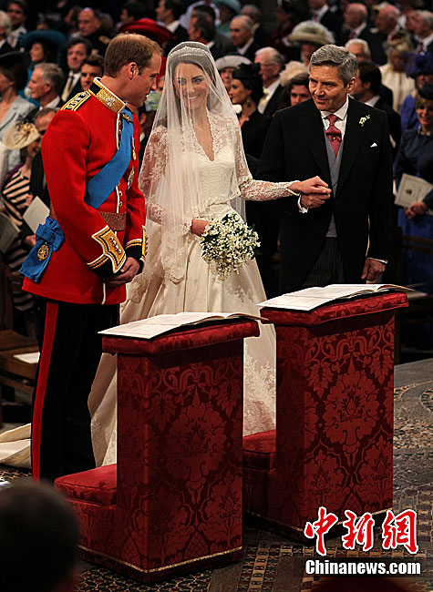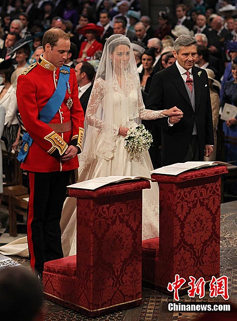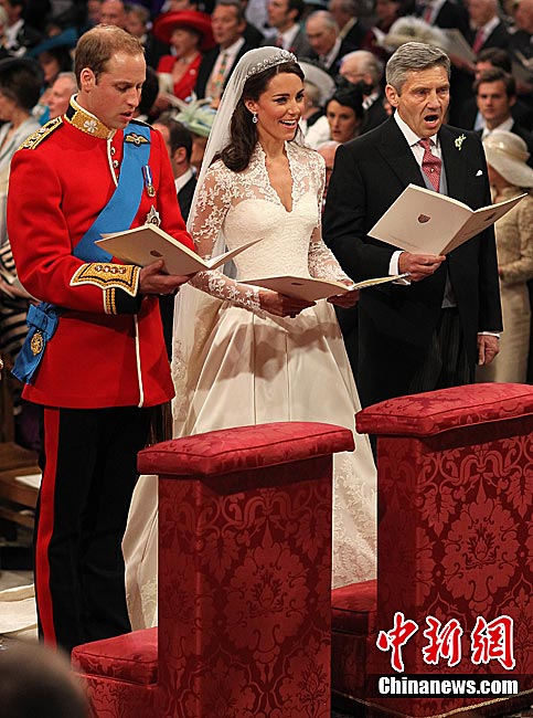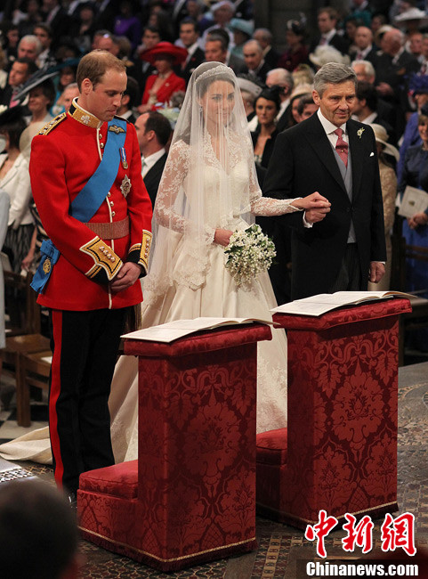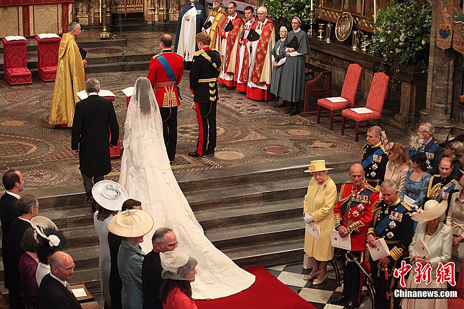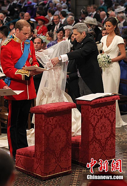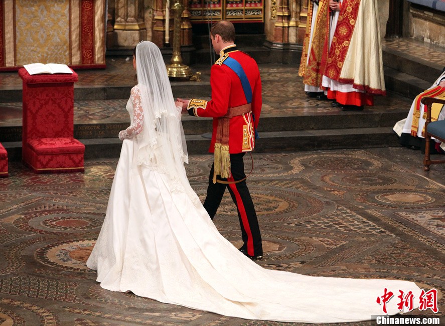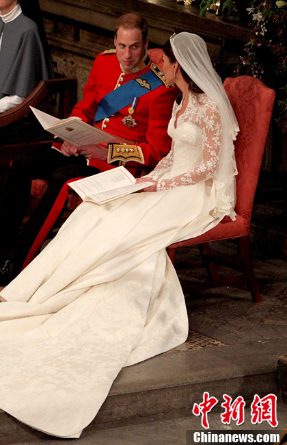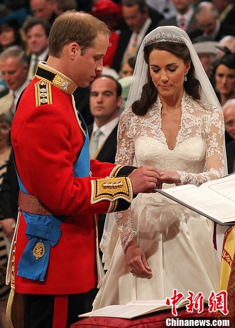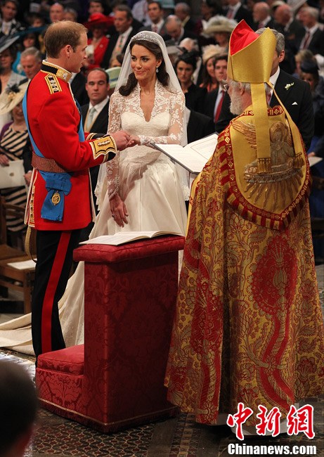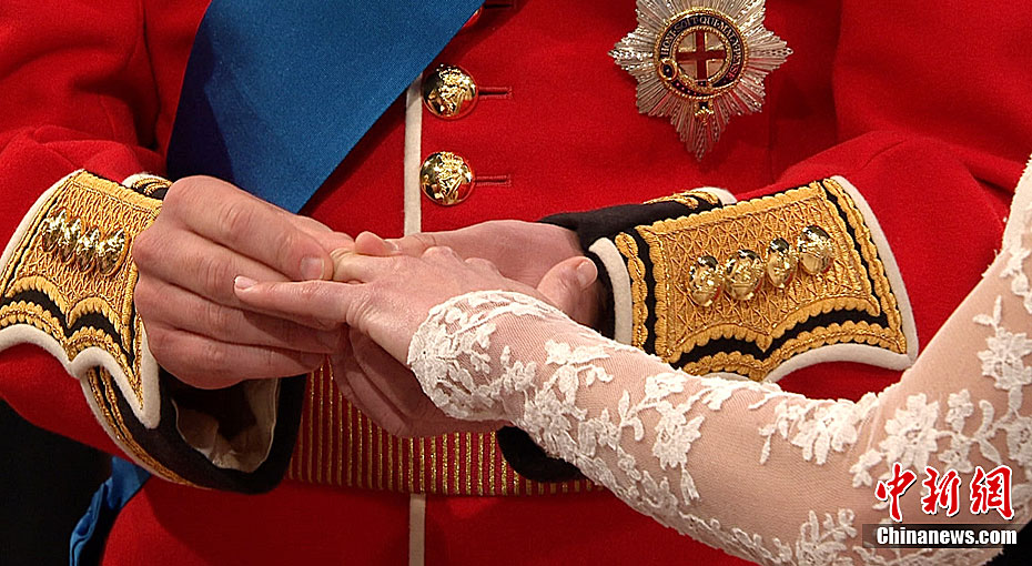 4月29日,英国伦敦,英国威廉王子与凯特·米德尔顿在坎特伯雷大主教的见证下交换结婚戒指。当地时间11时,英国威廉王子与携手相恋多年的女友凯特·米德尔顿,正式步入婚姻殿堂,举办一场新世纪的“童话婚礼”。