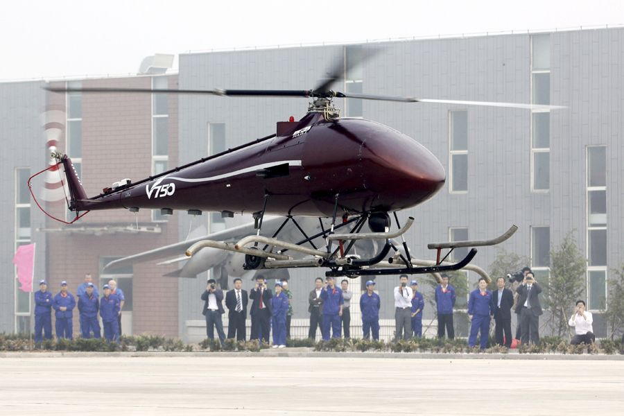 5月7日,由山东潍坊天翔航空工业有限公司与中航工业西安飞行自动控制研究所等单位联合研制的V750无人直升机在山东潍坊试飞成功。据了解,V750无人直升机起飞重量为757公斤,任务载荷大于80公斤,最大平飞速度为每小时161公里,最大航程为500公里,续航时间大于4小时。该机可外控飞行(人工遥控),也可以程控自主飞行。V750无人直升机控制半径超过150公里,使用升限为3000米。V750无人直升机的研制成功填补了我国中型无人直升机的空白。孙树宝 摄 图片来源:新华网