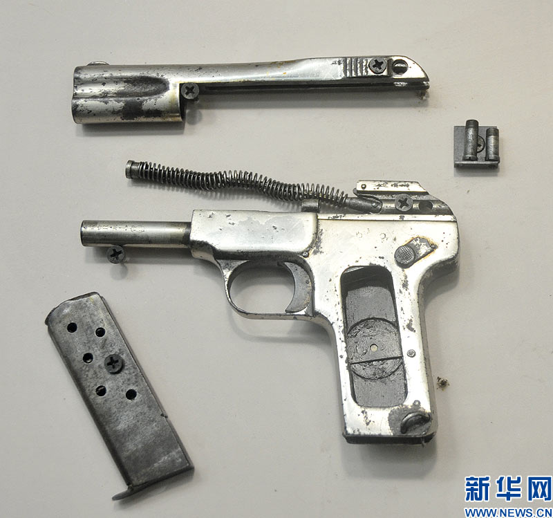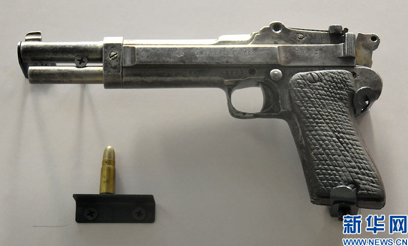 勃朗宁M1906袖珍手枪。1904年,勃朗宁以M1903为基础,开发出了第一支袖珍型(Pocket Model)自动手枪——M1906。M1906的成功设计使之成为后来大多数袖珍自动手枪的“典范”和“模板”。该枪尺寸较小,全枪长仅114mm(4.5英寸),比成年男性的手掌要短得多,即使握在手中也不引人注目,故解放前在我国被称为“四寸勃朗宁小手枪”或“掌心雷”,也有称其为“对面笑”的,取其隐蔽性好,可以攻敌不备之意。枪身宽约25mm,体积只比一包香烟略大,紧急情况下在衣袋内即可直接射击。该枪质量较轻,空枪质量350g,带一个实弹匣质量仅400g,因此还颇受上流社会淑女的青睐。该枪在细节设计上独具匠心。全枪外形比较平滑,没有凸出的棱角,固定式缺口和准星全部隐藏在套筒顶端长槽内,扳机也采用平板状,不会因钩住衣袋衬里而影响出枪速度。该枪的另一特点是非常重视安全性,设有三重保险,在膛内有弹的情况下携行也十分安全。郑文浩 摄 图片来源:新华网