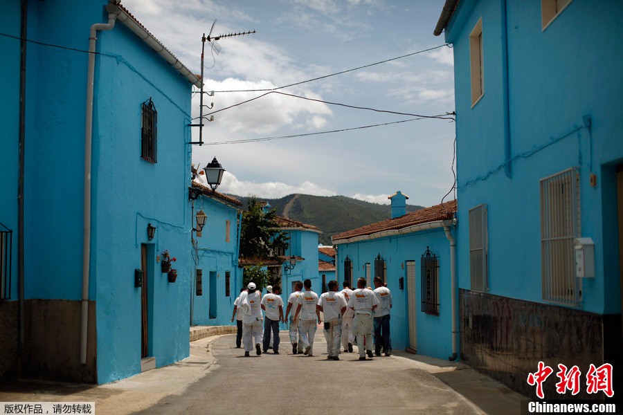 西班牙现"蓝精灵村" 房屋全涂成梦幻蓝