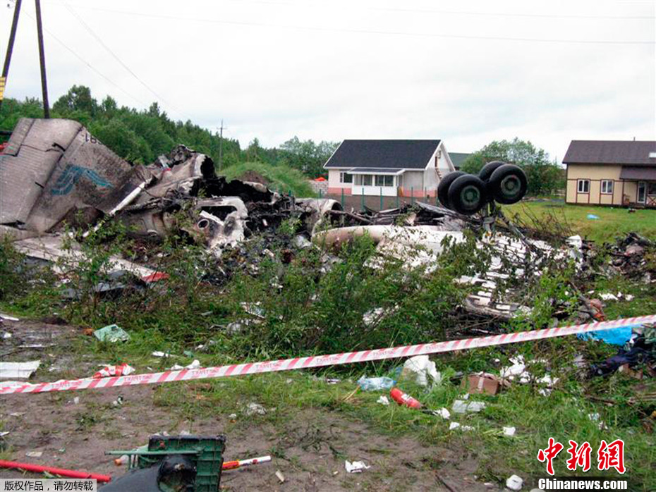 6月21日凌晨,俄罗斯一架图-134客机在俄西北部的卡累利阿共和国强行降落,目前已造成44人遇难。该飞机于莫斯科时间22时30分从莫斯科达莫杰多沃机场起飞,于21日零时左右与地面失去联系。飞机在距目的地卡累利阿共和国首府彼得罗扎沃茨克机场两公里的公路上强行降落时,飞机与地面撞击导致起火燃烧,机身严重损毁。图为事故现场飞机残骸。