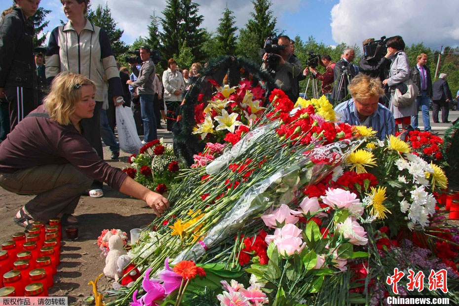 当地时间6月22日,俄罗斯西北部的卡累利阿共和国彼得罗扎沃茨克,当地民众为坠机事故的遇难者献花以表示哀悼。6月20日凌晨,俄罗斯一架“图-134”客机在俄罗斯西北部的卡累利阿共和国强行降落,截至目前已造成45人遇难。