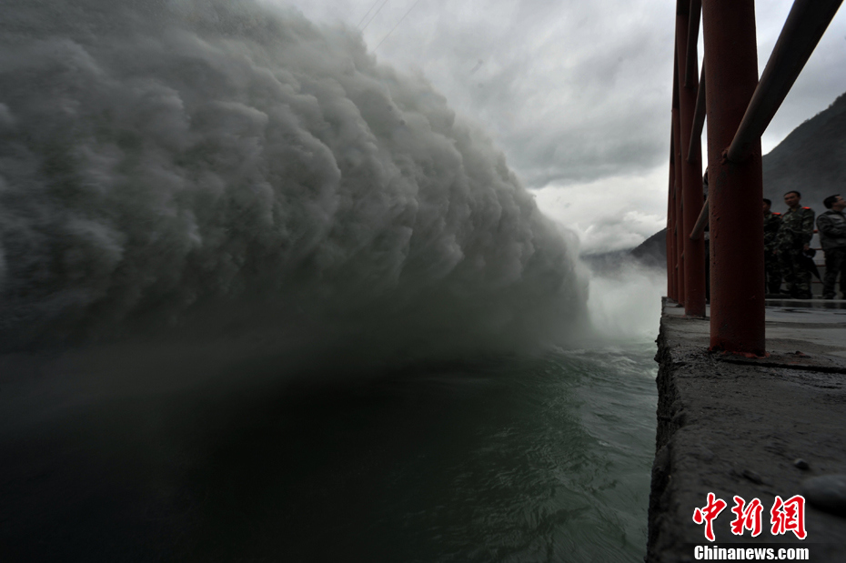 西藏武警新建电站泄洪发电——丰水季节大泄洪