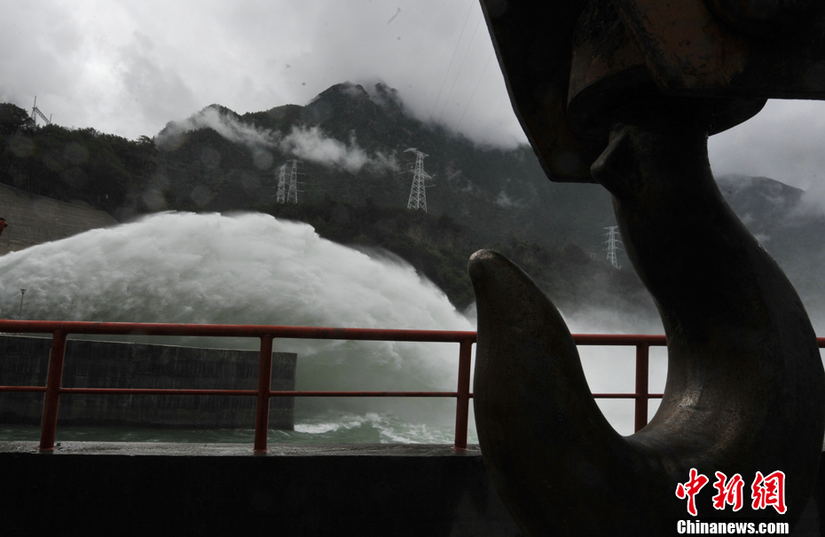 6月25日,武警水电三总队今年6月新建成的西藏林芝老虎嘴水电站,开始丰水季节泄洪发电。这里也成为西藏目前水电第一高坝,电力将于今年并入国家电网。中新社发 贾国荣 摄