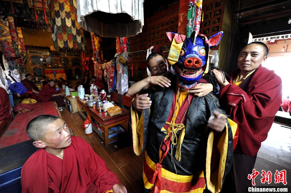 西藏直贡梯寺法会 僧人表演金刚神舞