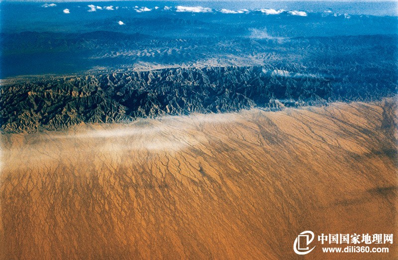 祁连山虽然在中国的地理和历史上举足重轻,但无论从高度还是规模上都很难和喜马拉雅山、昆仑山等这些世界上极为巍峨的山脉相提并论。尽管如此,这里的冲积扇却给人留下深刻的印象。其实相比于高耸磅礴的著名山脉,干旱区、半干旱区很多中小型山脉的冲积扇看上去更加恢宏壮观。从空中望去,祁连山山前平原开阔,冲积扇一个接着一个,它们相互连接、重叠,以至于扇形结构已经无从分辨。一道道洪水留下的痕迹,如一道道阳光射向远方。王琛 摄 图片来源:中国国家地理网