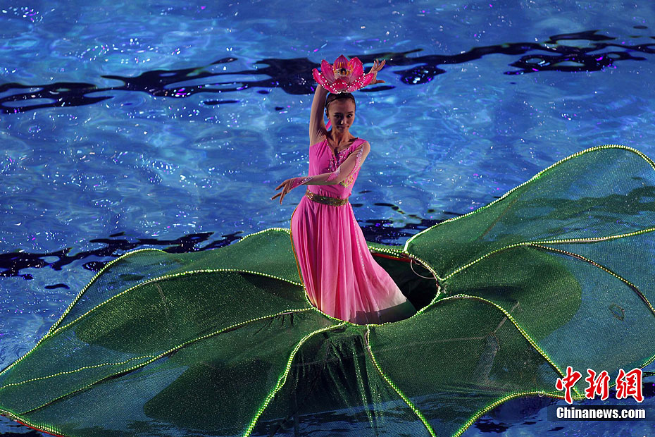 7月16日晚,第14届国际泳联世界游泳锦标赛在上海东方体育中心举行开幕式。在为期16天的比赛时间里,全球181个国家和地区的2000多名泳坛健将们将在跳水、水球、花样游泳、游泳(包括公开水域)四个大项、66个小项中展开激烈竞争。中新社发 汤彦俊 摄