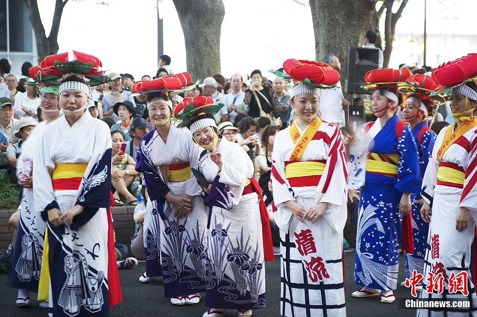 7月16日到17日,日本地震灾区宫城县仙台市举行六魂祭大型活动。本次活动首次把日本东北六县的各自的传统夏日庆典活动汇聚一堂,包括青森灯笼祭,秋田竿灯祭,岩手县盛冈SANSA舞祭,山形花笠祭,仙台七夕祭,福岛草鞋祭。主办方预计两天将有10万人前来观礼,但16日首日人数已经超过10万人。同时高温天气导致25人因中暑而晕倒。主办方不得不提前中断本次活动。中新社发 孙冉 摄