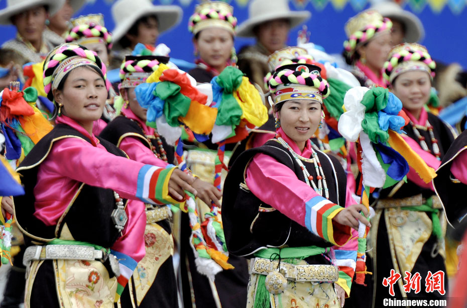 7月19日,西藏和平解放60周年庆祝大会在拉萨举行。 图为庆祝大会举行群众游行。中新社发 李林 摄