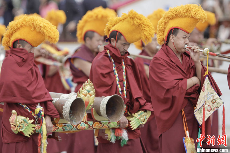 7月19日,西藏和平解放60周年庆祝大会在拉萨举行,图为由147名僧人组成的方阵,他们来自拉萨各大寺院和不同的教派,代表着全自治区爱国爱教的广大僧侣。中新社发 盛佳鹏 摄