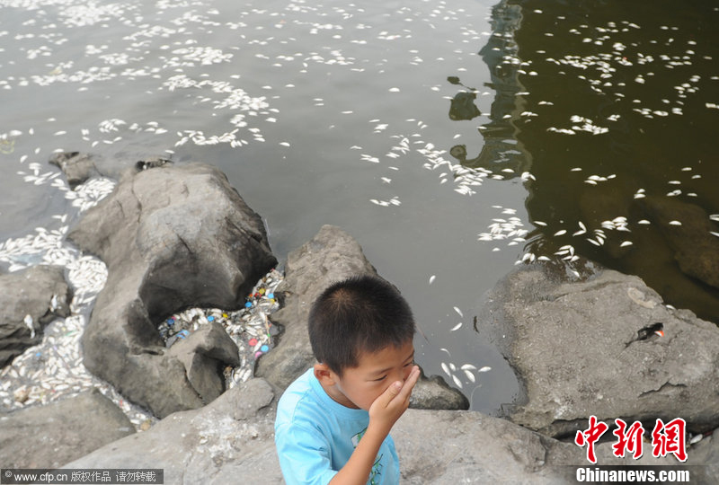 2011年07月21日,天津,海河现大面积死鱼群。这种鱼俗称“小刺鱼”,又称“青线鱼”,大多是从海水中倒灌回游到海河中的。由于这些鱼不是典型的淡水鱼,因此其抗压能力比淡水鱼要小很多。塘沽环保监察支队的工作人员表示,除天气原因之外,连日来的降水,大量地表污染物跟随雨水注入海河,水体受到影响,也影响了“小刺鱼”的生活环境,造成鱼群闷呛而死。图片来源:CFP视觉中国
