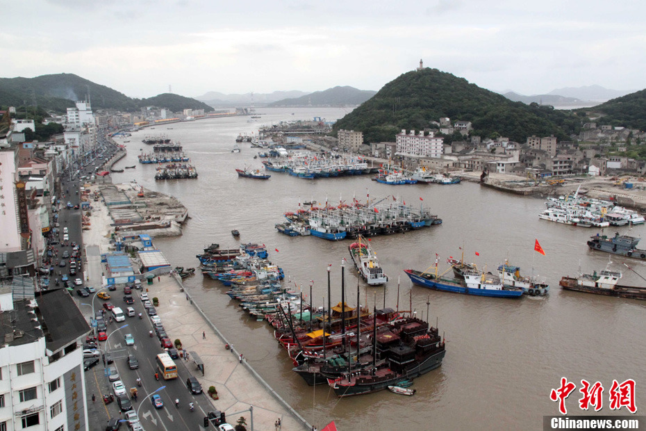 被戏谑为“梅超风”的第9号强台风“梅花”逐渐向浙江逼近。目前,浙江海事部门已启动二级防台警报。截至8月5日14时,浙南辖区已有20余条客运航线停航,目前在浙江辖区内避风的商船达到4000余艘,仅舟山海域就有近万艘商渔船归港避风。中新社发 江耘 摄