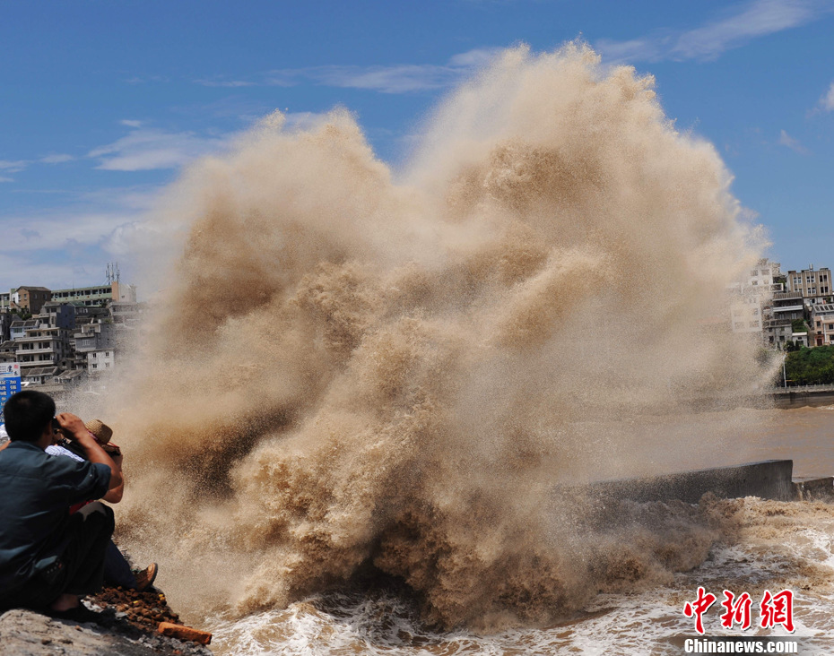 8月6日,浙江玉环沿海激起狂风巨浪。由于受强台风“梅花”的影响,当日中午正逢涨潮,该县坎门应东码头大浪汹涌而起,直扑防浪堤,激起巨浪高约20多米。中新社发 林楚炳 摄 图片来源:CNSPHOTO