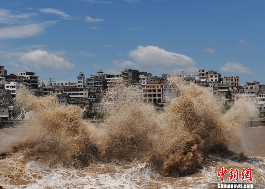 8月6日,浙江玉环沿海激起狂风巨浪。由于受强台风“梅花”的影响,当日中午正逢涨潮,该县坎门应东码头大浪汹涌而起,直扑防浪堤,激起巨浪高约20多米。中新社发 林楚炳 摄 图片来源:CNSPHOTO