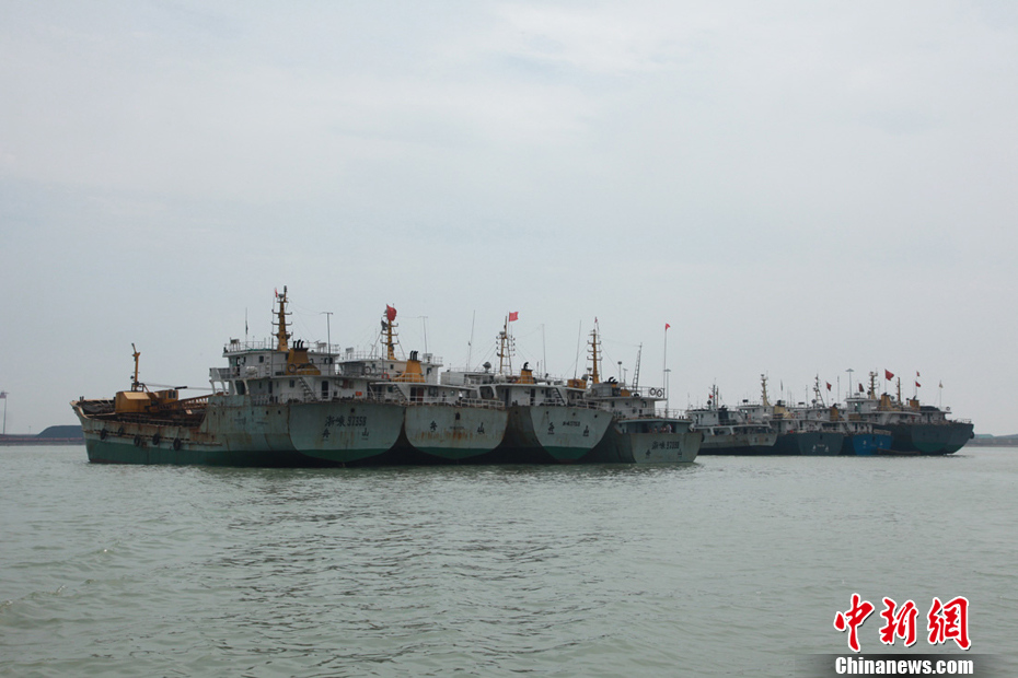 长江江苏段数百艘船撤离沿海 回港避风