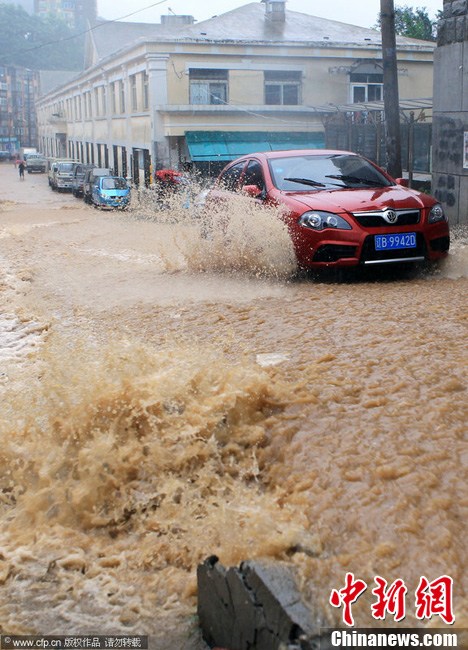 8月8日,大连,街道积水严重。受台风“梅花”影响,大连从2011年8月7日夜晚至8月8日一直大雨滂沱。李雪劲 摄 图片来源:CFP视觉中国
