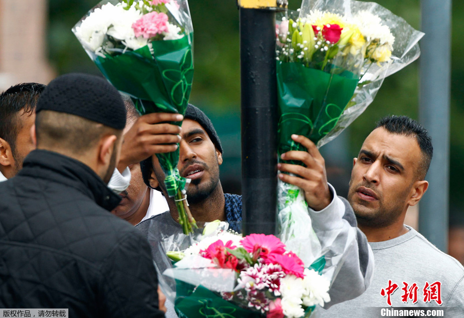 8月9日晚,英国伯明翰市有3名男子在骚乱中保卫家园时被汽车撞死,警方正在对事件进行调查。当地居民自发地聚集在事发现场悼念被撞身亡的3名男子。