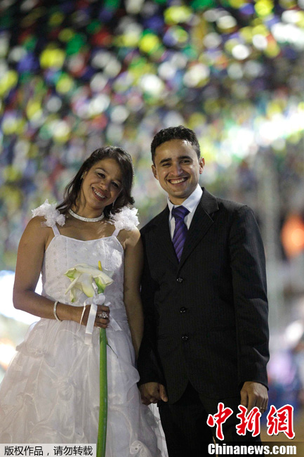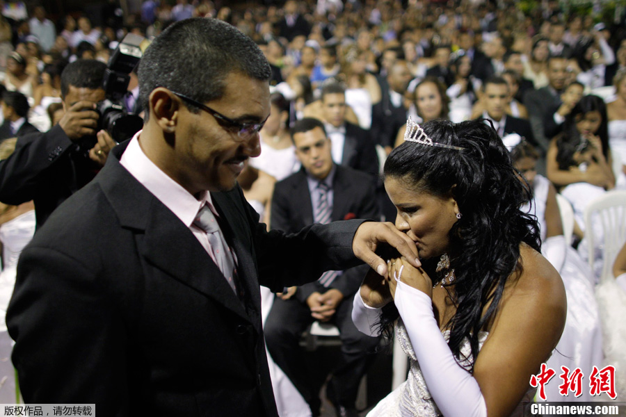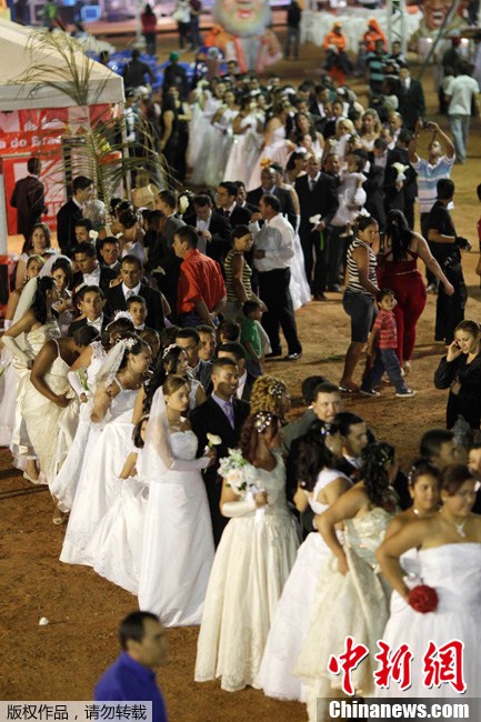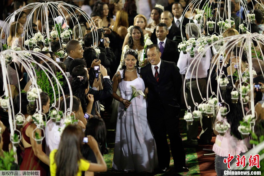 “廉价”的浪漫 巴西百对新人举办集体婚礼