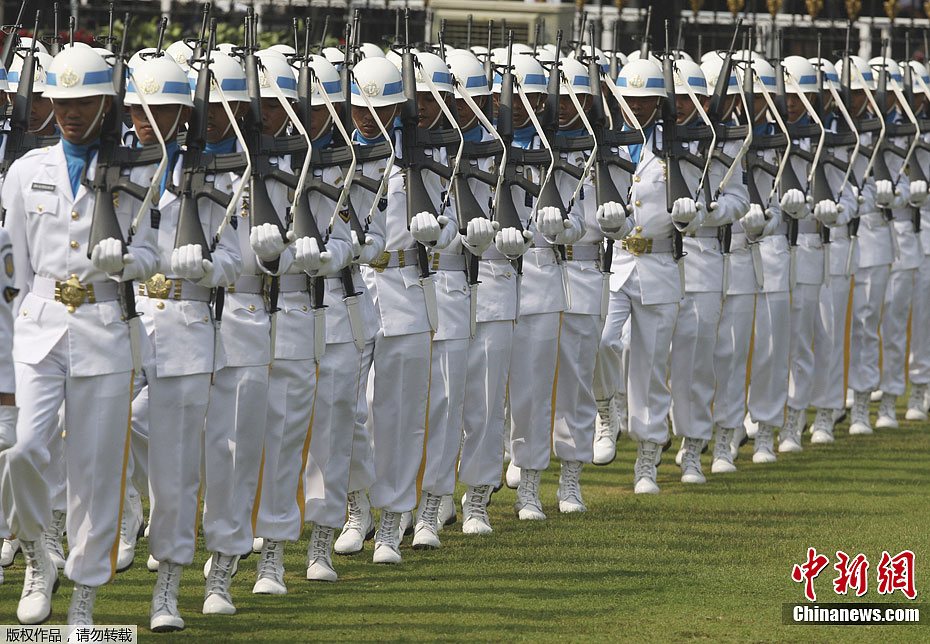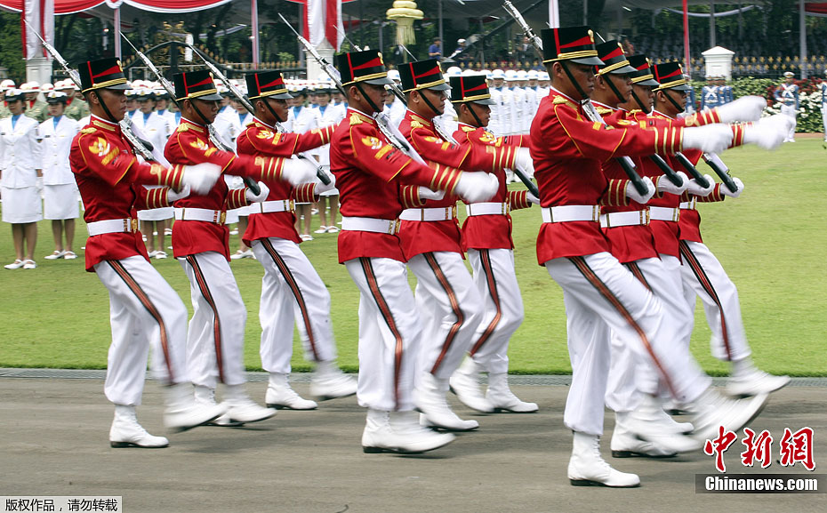 8月17日是印度尼西亚共和国成立66周年纪念日。当天上午,印尼政府在雅加达总统府举行隆重的庆祝仪式。图为庆祝活动中,印尼战斗机掠过雅加达市中心上空喷雾庆贺。中新社发 顾时宏 摄