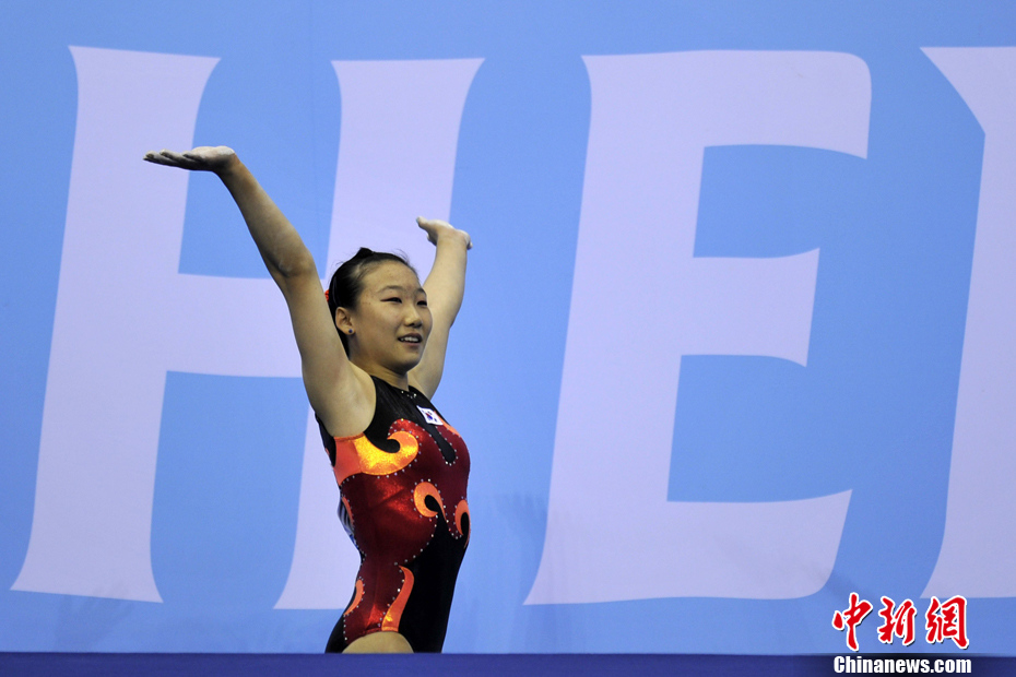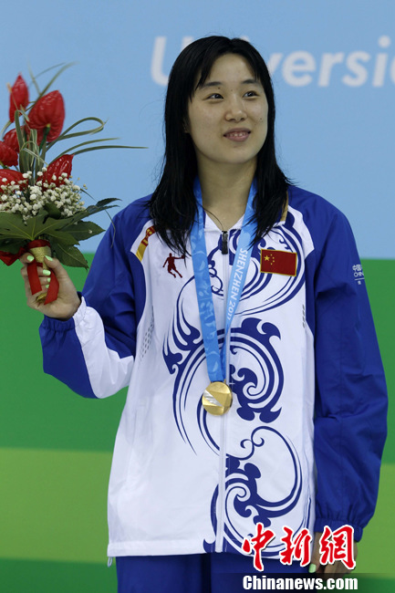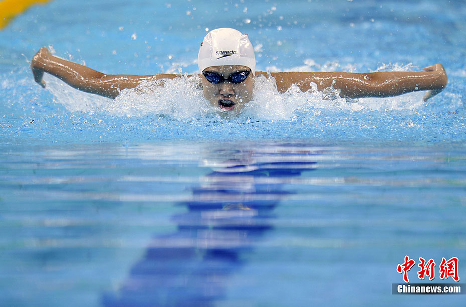 8月17日晚,在深圳第26届世界大学生夏季运动会游泳项目女子100米蝶泳决赛中,中国选手陆滢以57秒86的成绩夺得冠军。中新社发 金硕 摄