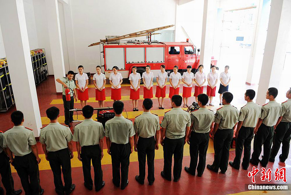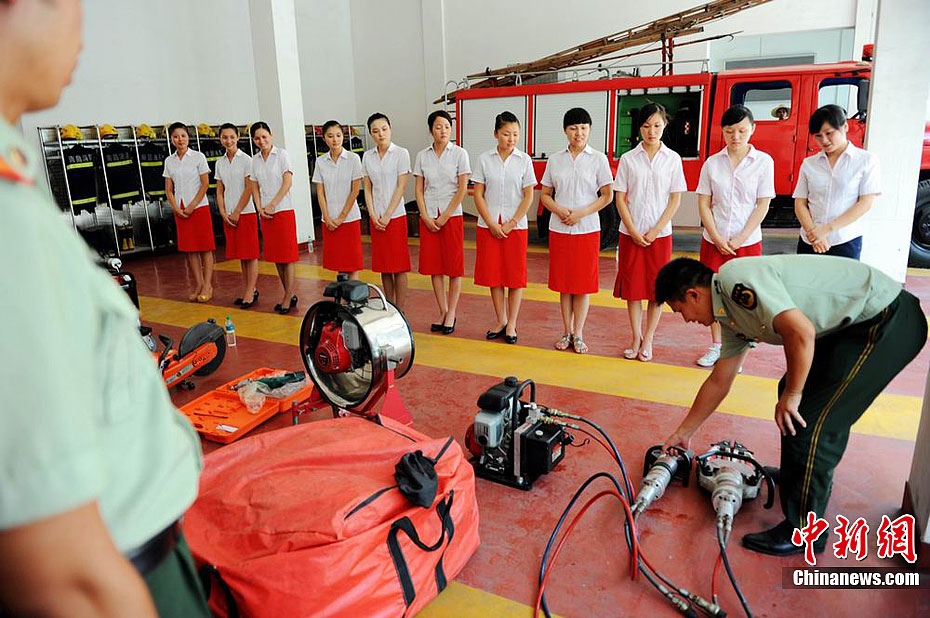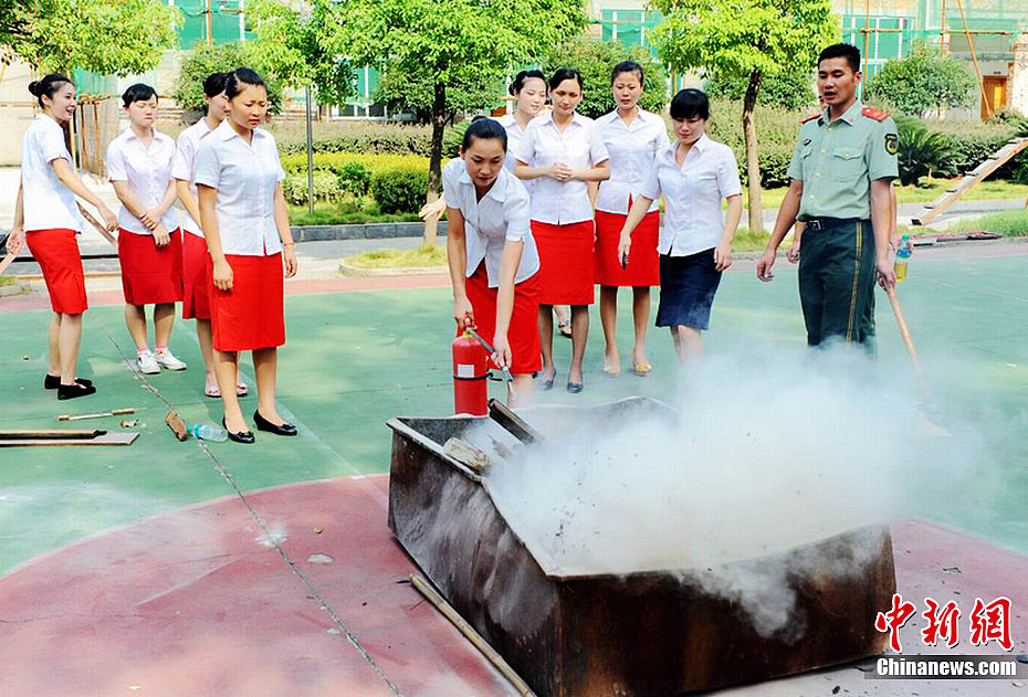 列车美女乘务员学习消防“武艺”