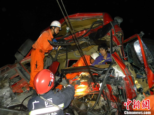 京藏高速30余辆货车连环相撞